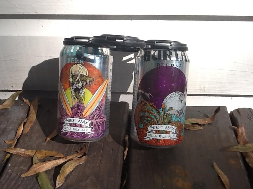 Burial “Surf Wax” IPA. The can reads “the human spirit is still alive” and that spirit is what binds the beer and the band. That and the surfy/pop/summer vibe. Burial says each cans label art is a story of the beer.